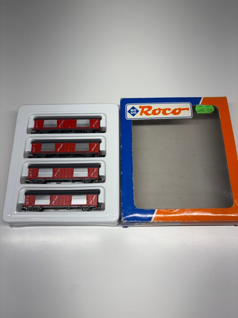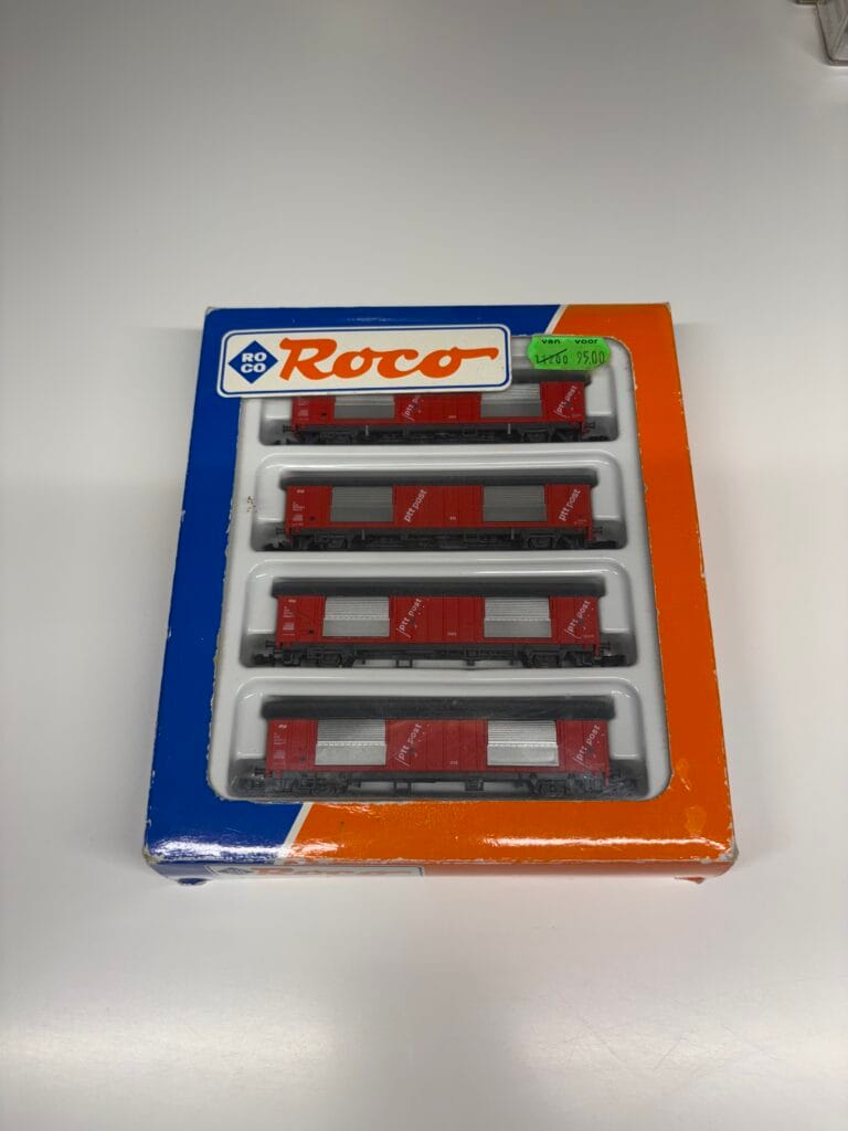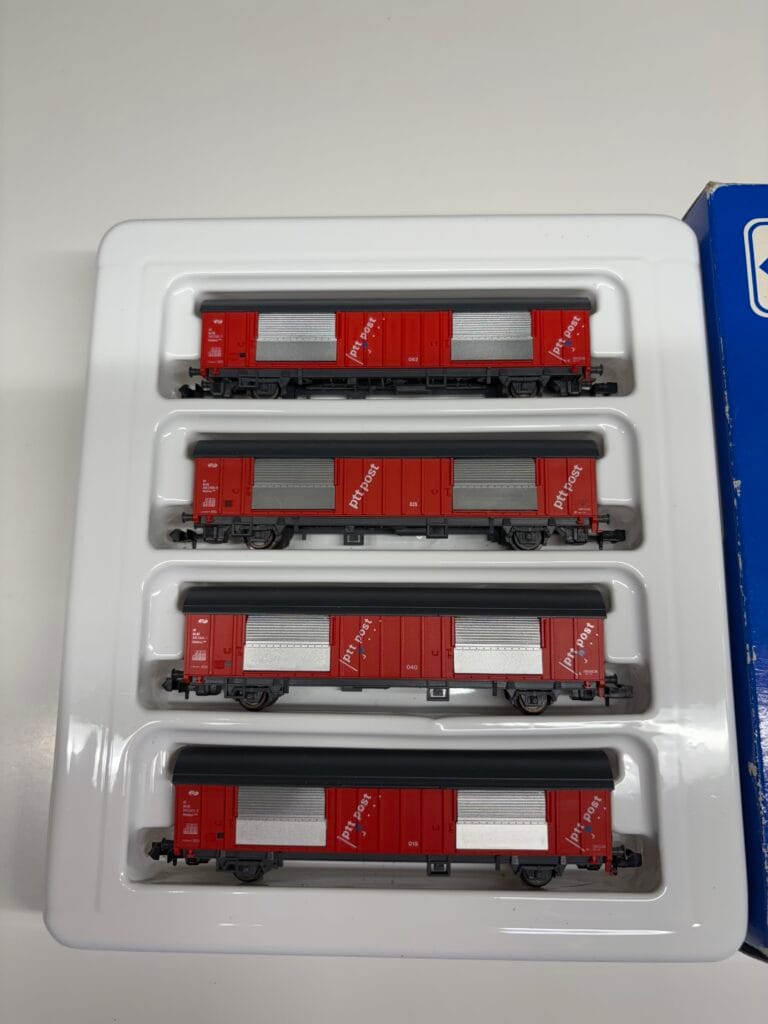 If you’re looking for an authentic addition to your Dutch railway collection, the Roco 24007 is a fantastic choice. This N scale model features a four-piece freight wagon set, representing the Hbbkkss postal trolleys used by the NS (Nederlandse Spoorwegen). These wagons were a key part of mail transportation in the Netherlands and were used by PTT Post, the Dutch postal service, for efficient and secure mail transport across the country.